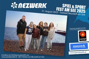 Der Verein NEZWERK ist wie jedes Jahr mit von der Partie beim Spiel- und Sportfest der Stadtgemeinde Neusiedl am See, das immer Ende der Sommerferien stattfindet. Kommt vorbei und holt euch ein gratis Erinnerungsfoto bei unserer Fotobox - powered by Fotobox by Partybooth sowie Sparkasse Hainburg-Bruck-Neusiedl und Fa. Lautner-Heizung!